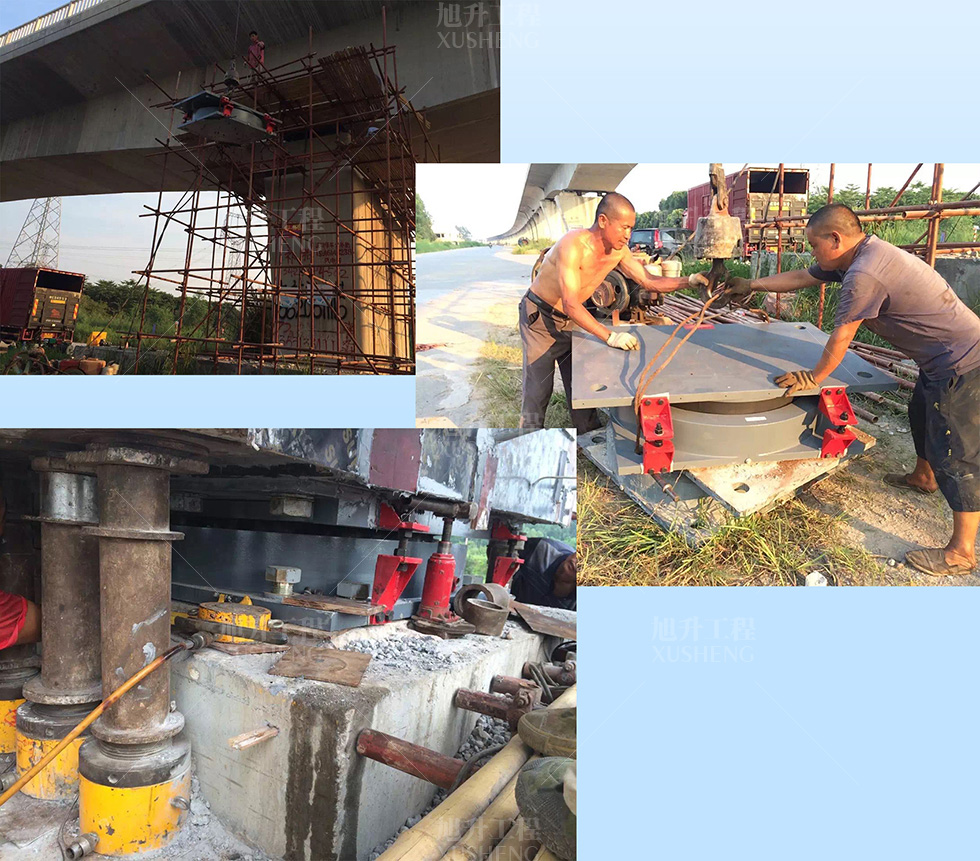 施工內(nèi)容:30KN輕軌球形盆式支座更換(調(diào)平墊石脫空導(dǎo)致支座損壞)