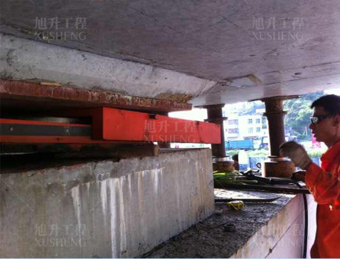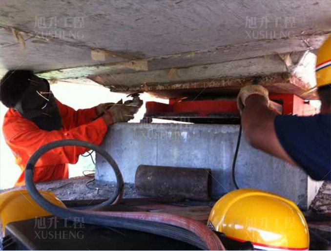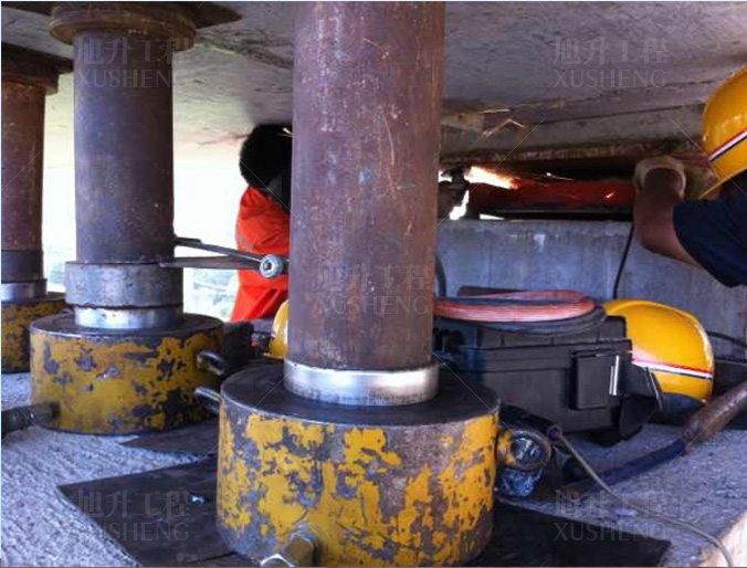 本項目為高速通車之前自檢發(fā)現(xiàn)因現(xiàn)場技術(shù)員疏忽,盆式橡膠支座安裝方向裝錯,我公司為其頂升調(diào)整。使用設(shè)備: