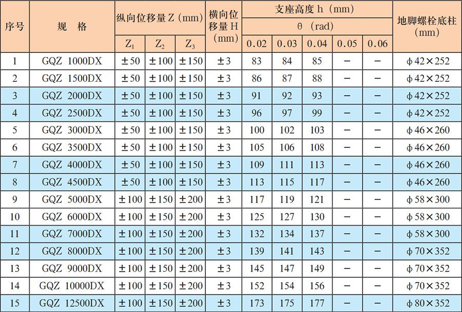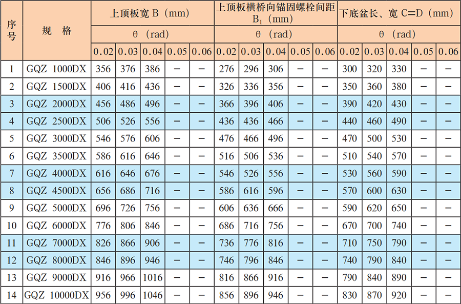 5.1 單向活動支座 GQZ-DX 結(jié)構(gòu)示意圖見圖 1,其規(guī)格系列見表 1。