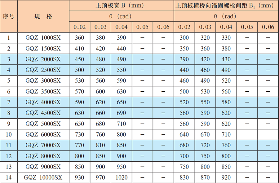 A1、B1——上頂板錨固螺栓間距,單位為毫米(mm)